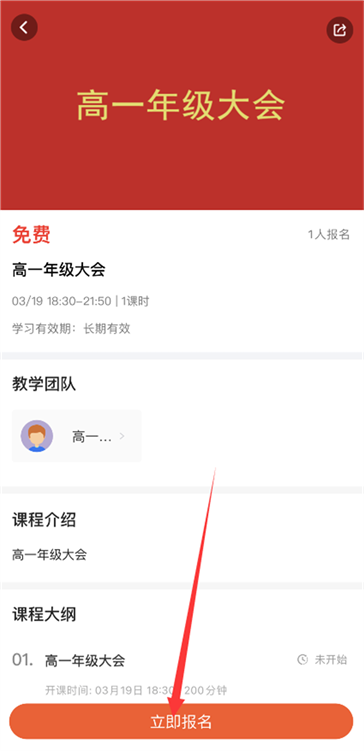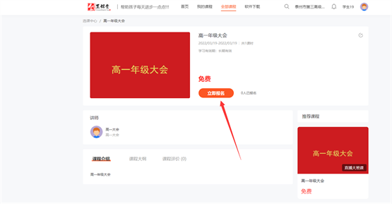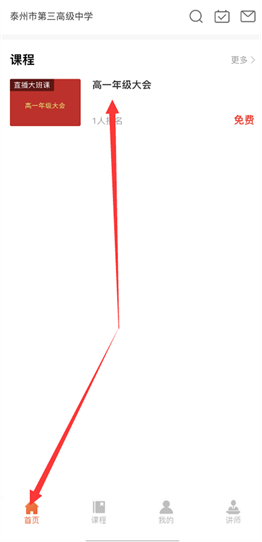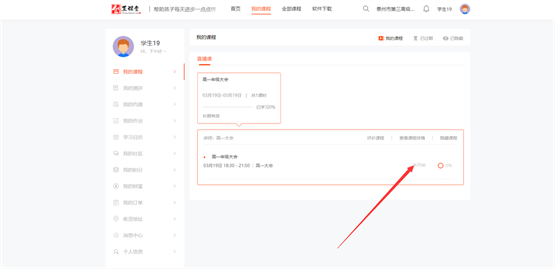 7.进入课程中心后,点击下方图示位置即可开始上课
