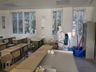 (清空教室并进行消毒)