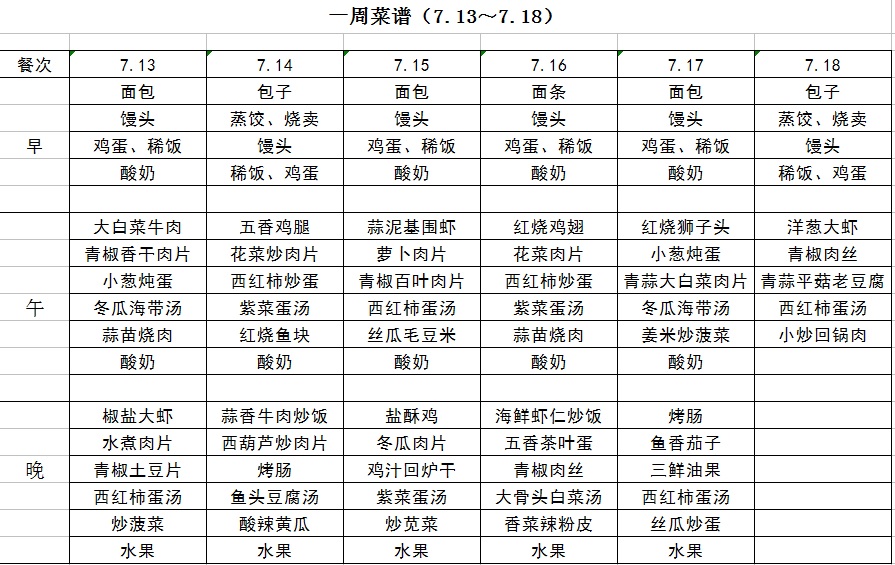 一周菜谱(7.13~7.18)