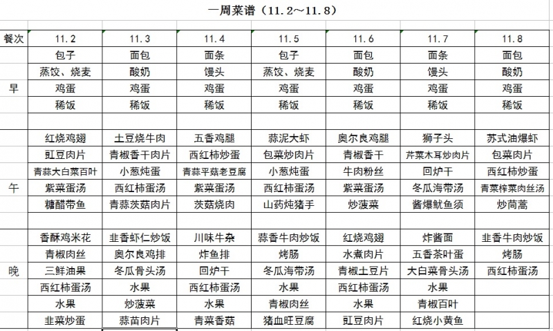 一周菜谱(11.2~11.8)