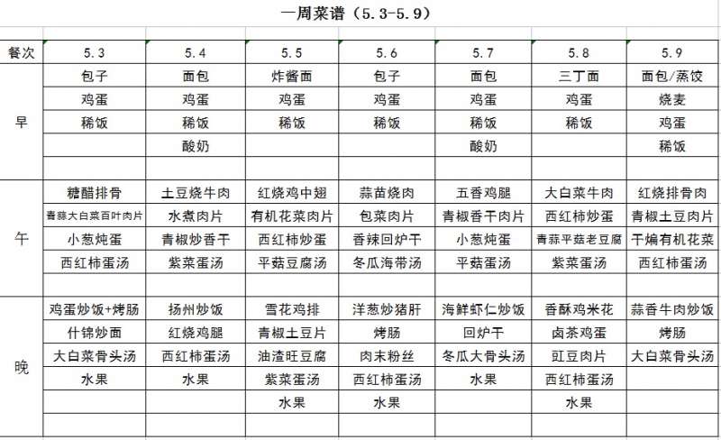 一周菜谱(5.3~5.9)