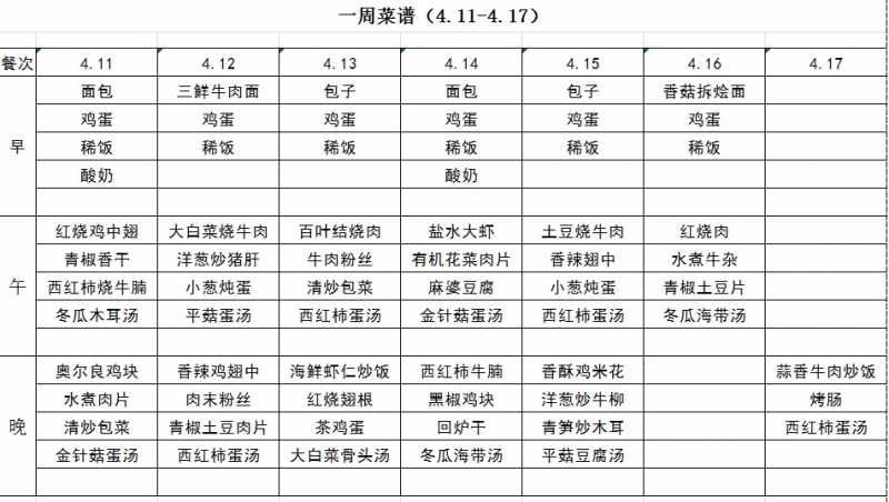 一周菜谱(4.11-4.17)