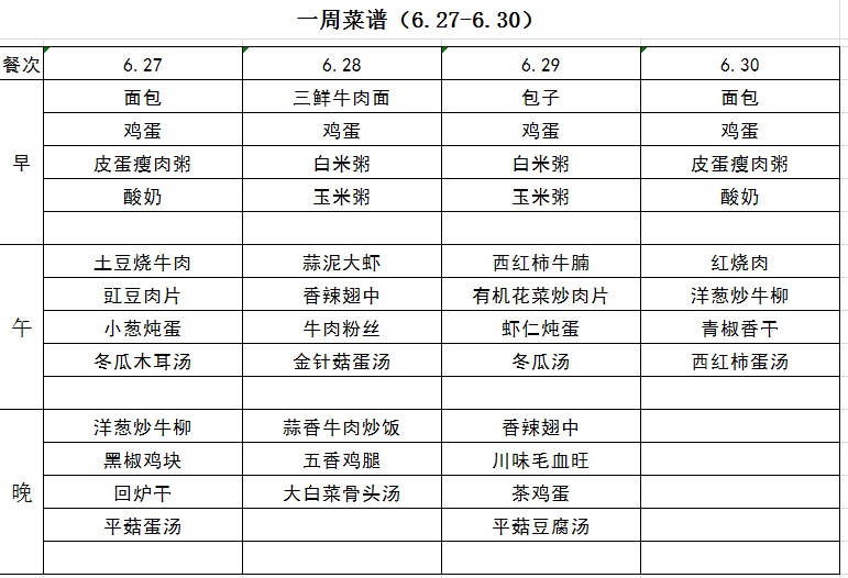 一周菜谱(6.27-6.30)