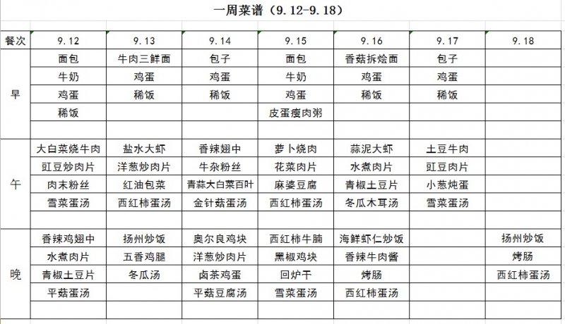 一周菜谱(9.12-9.18)