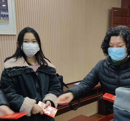 2月1日上午,由校友姜德军发起成立的泰州医药高新区首善慈善基金会代表和寺巷街道副主任、民政、妇联等一行6人,来到我校,对我校11名家庭经济困难学生发放了爱心助学金。